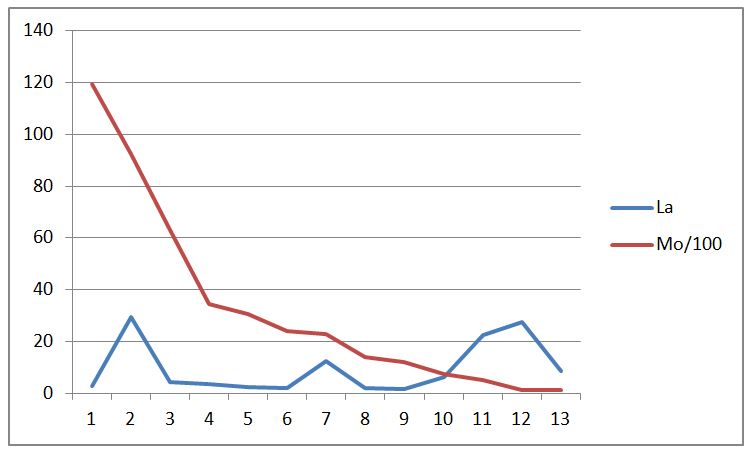 Figure 10: La and Mo/100 values (LHS in ppm)