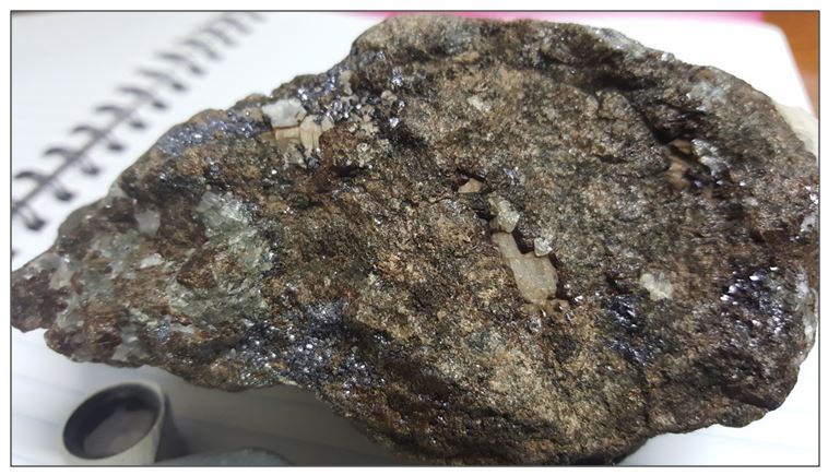 The skarn is host to a non-compliant resource estimated by North Broken Hill in 1963 at 1,400,000t @ 0.11% Mo.  Limited test work has reported grades of up to 994 ppm Rhenium within the molybdenum mineralization.  Tungsten mineralisation has also been reported. The bulk of the resource is hosted in this broad, folded sheet of metamorphosed sedimentary rock.  Within this unit, there are several narrow (0.5 – 1m) high-grade (up to 1.5% Mo) steeply dipping veins which trend north-south throughout the eastern side of the deposit.  This high-grade Mo mineralization contains tabular crystals of Mo up to 30mm across.
